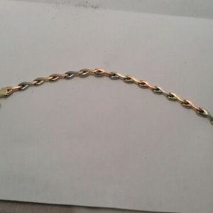 4.40 Grams 5mm Lady's 14k Yellow Tri-Color REAL Solid Gold XO Hearts and Kisses Fancy Bracelet 7 1/4''