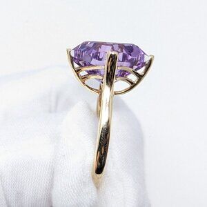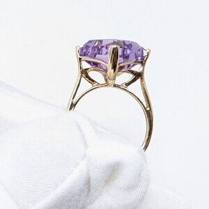 14k Vintage Solid Gold Fantasy Curvy Princess Cut Large Amethyst Cocktail Ring