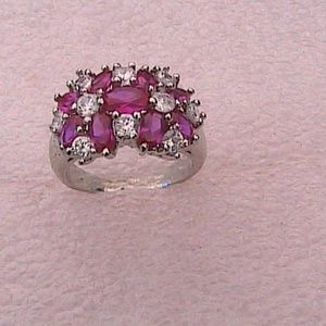 Brand New w/o Tag 14k White Gold Filled Lab-Created Ruby and White Topaz Band Ring