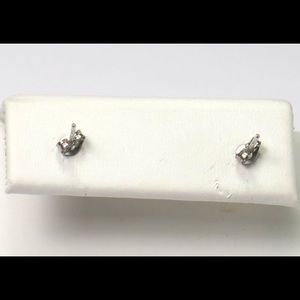 14k White Gold And Diamond Stud Earrings W/Stone