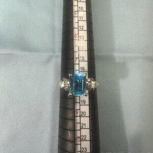 14k White Gold Blue Topaz size 8 in excellent condition. Genuine Diamonds. 4.25 grams