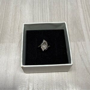 14k White Gold & Diamond Marquise Design Ring with Geometric Detailing