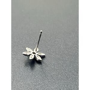 14k White Gold Diamond Earrings. Vintage Flower Petal Design Stud Earrings with Inlaid Petite Diamonds