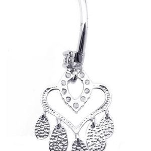 Here we have a beautiful 14k white gold cz belly button ring with a open heart shape