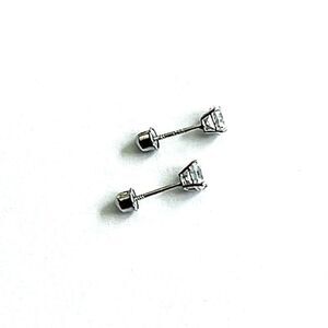 14k White Gold Round Solitaire Basket Set Stud Earrings with Screw Back 4 mm