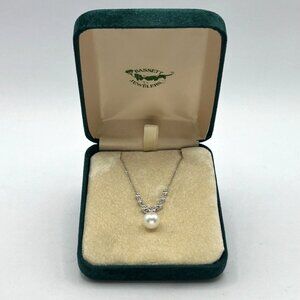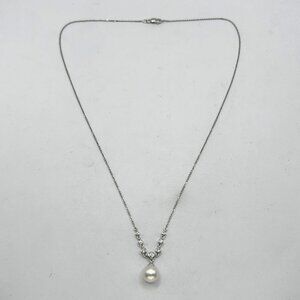 14k White Gold w Cultured Freshwater Pearl & .12ctw Diamond Bezel Set Necklace