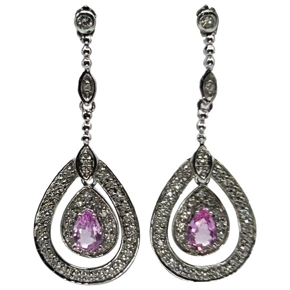 14k White Gold with .25ctw Pear Cut Pink Sapphire & Pave Diamond Dangle Earrings