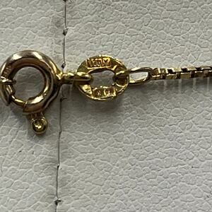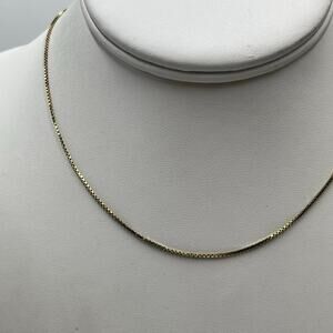 Add a touch of timeless elegance to your jewelry collection with this 14k yellow gold Italy box link chain necklace. Weighing 2.53 grams, and 15”, this piece is perfect for layering or wearing solo for a minimalist look. Its fine craftsmanship design makes it a versatile accessory for any occasion.