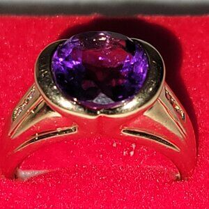 14k Yellow Gold Amethyst Solitaire Cocktail Ring W/ Diamond Accents 14.16 $1300