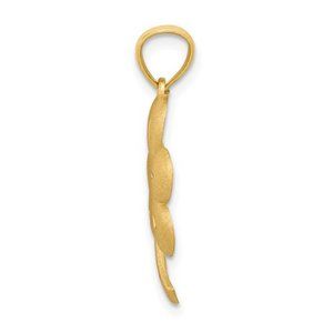 14k Yellow Gold Brushed Finish Diamond-cut 3-Leaf Clover Shamrock Charm Pendant