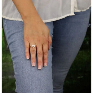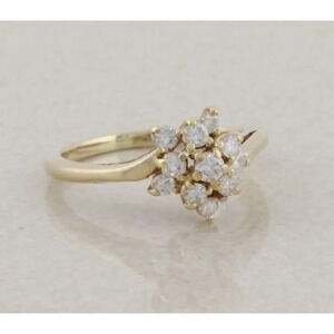 14k Yellow Gold Diamond Cluster Flower Ring Size 6 1/2