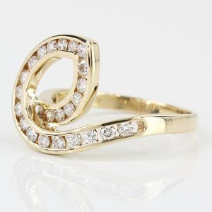 This beautiful ring is made of 14 Karat Yellow Gold featuring a loop design with a total of 23 round diamonds placed throughout in a channel setting. The ring is originally a size 6.5, although if needed it can be re-sized by a qualified jeweler. It weighs a total of 1.8 pennyweights which is equivalent to 2.8 grams. Please note that this ring is stamped with "14KP" on the inner band. This ring is perfect for individual's who like their diamonds in their jewelry in a channel setting. Though it might have a vintage design, the way the diamonds are set allow the ring to show off its full beauty! Buy for yourself or buy as a gift, it will for sure make anyone's day!