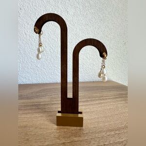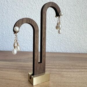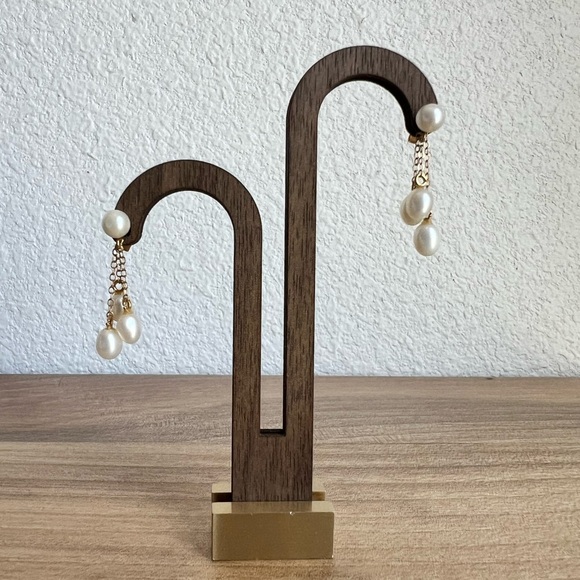 14k Yellow Gold Elegant Pearl Drop Cluster Earrings Beach Classic Minimalist