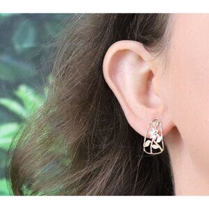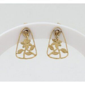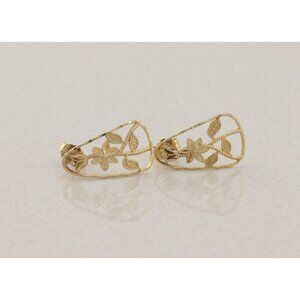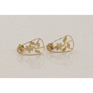14k Yellow Gold Flower Floral Design Earrings Stud Post 3/4" x 1/2"