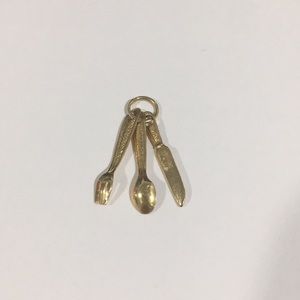 Beautiful 14k yellow gold spoon 🥄 knife 🍴 and fork charm. Weight: 1.0g. Length: 0.90" with bail. Width: 1/4". In excellent condition!!! Not marked but acid tested and confirmed 14k gold!!!