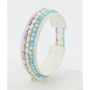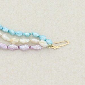 14k Yellow Gold Freshwater Natural Purple, White, Blue, Baroque Pearls 3 Strand