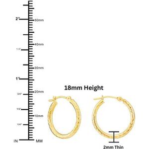 *A must-have hoop earrings. These stylish round hoop earrings feature Hand Engraved Diamond-cut design, styled in 14k yellow gold with high polished finish. These earrings are fasten with Sturdy click-top closure for an easy any comfortable wear. Perfect addition to your day to night outfit