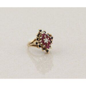 14k Yellow Gold Natural Diamond, Ruby, Blue Sapphire Ring Size 5 1/2