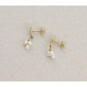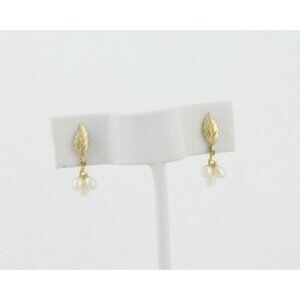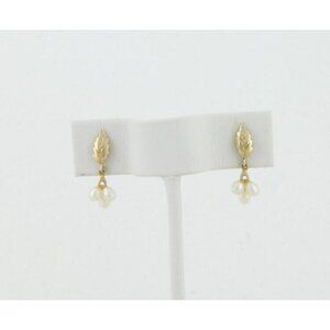 14k Yellow Gold Natural Pearl & Leaf Earrings Dangle Drop