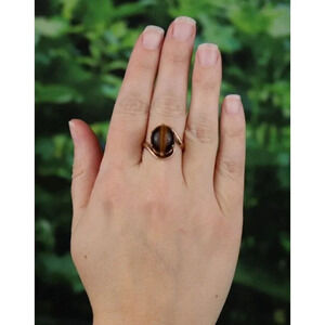 14k Yellow Gold Natural Tigers Eye Ring Size 7 1/2