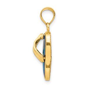 14k Yellow Gold Polished 3D with Created Blue Opal Beach Flip Flop Necklace Charm Pendant