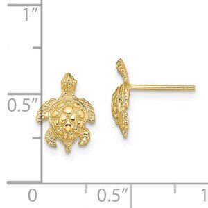 14k Yellow Gold Nautical Mini Sea Turtle Post Earrings w Push Friction Back