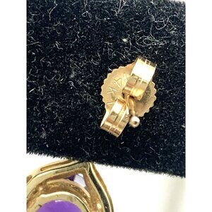 14k Yellow Gold Oval Purple Gemstone Women's Dangle Earrings Estate Jewelry