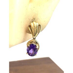 14k Yellow Gold 4.2 Grams Oval 9x7mm Purple Gemstone Women's Dangle Earrings Estate Jewelry (AP10332)