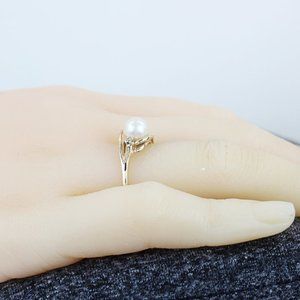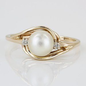 14k Yellow Gold Pearl Swirl Ring w/ Diamond Accent Stones