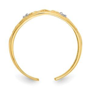14k Yellow Gold Solid Toe Ring .02ct Diamond Scroll Adjustable