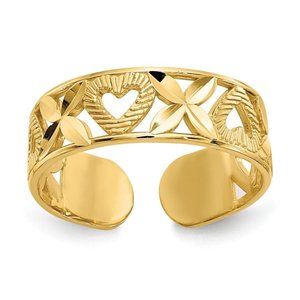 14k Yellow Gold Solid Toe Ring Diamond-cut X & Heart Adjustable