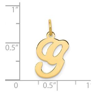 Indulge in a traditional initial charm that subtly enhances and personalizes your jewelry. Each small script style letter is approximately 15mm (9/16 inch) in length, finished with a standard jump ring, and fashioned from polished 14k yellow gold. Made in the U.S.A. Chain not included. This item has an approx. length of 15mm and width of 13mm.