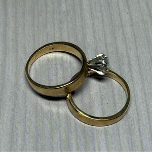 14k Yellow Gold Vintage Solitaire Natural Diamond Rings Set.
