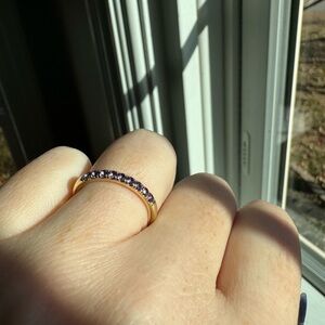 14k yellow gold and amethyst ring featuring 9 round amethysts (approx. 0.32 carats total weight). Size 7.5. Donut band.