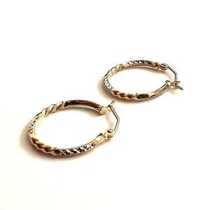 14k Yellow Gold two tone DC Hoop Earrings | 20 mm | Real Gold Huggies Earrings