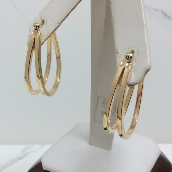14k Yellow Real Gold Oval Double Hoop Hoops Earring 3.50gr