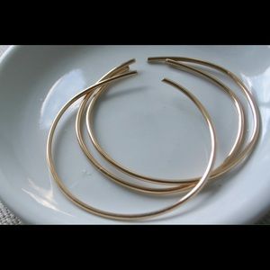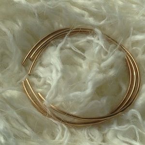 Handmade bracelets. Minimalist and delicate style. They can be adjusted slightly but made to fit size small wrists. 14k gold filled so it will not tarnish. Can be sold individually $55 each. Measurements are about 8" around and 2.5" across/diameter.