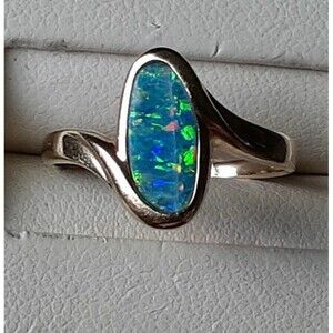 This ring has beautiful color. I took some of the photos before i had the ring sized to a 8.5. The 14k marking is no longer visible.