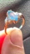 This is beautiful 14k yellow gold with natural blue stone ring. Stamped. 14K gold ring featuring a marquise-cut blue gemstone (likely blue topaz) with small side accent stones, in a vintage floral design.