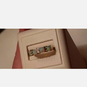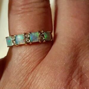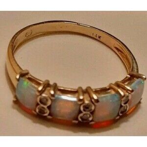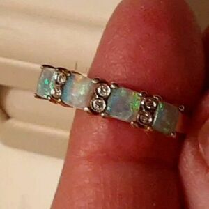 14k solid yellow gold Australian opal diamond band ring size 8.5