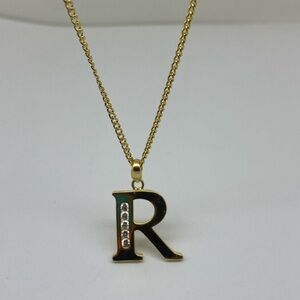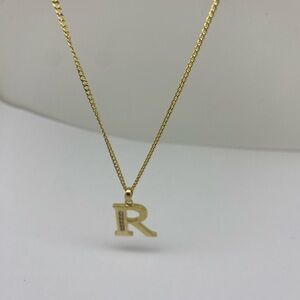 14k yellow Gold Initial 'R' with 0.10ct diamond Pendant Necklace 18inches