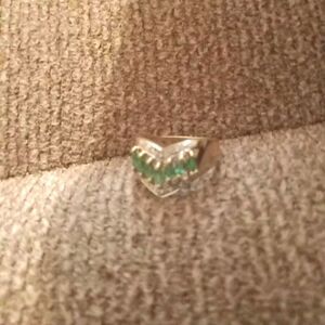 this is a very exquisite vintage marquise emerald and pave diamond ring done in a v shape.