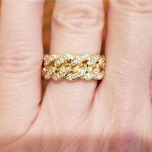 Elegant curb link ring with stunning cubic zirconia and 14k gold plated sterling silver