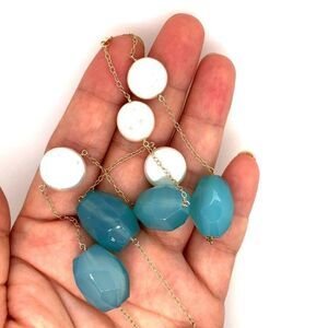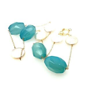 Real 14k Yellow Gold Green Quartz and Pearls Necklace by Zoe B., NOT GOLD PLATED OR GOLD FILLED.