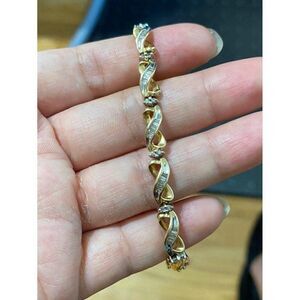 Real 14k Yellow Gold Bracelet with Natural Baguette and Round Small Diamonds, NOT GOLD PLATED OR GOLD FILLED.