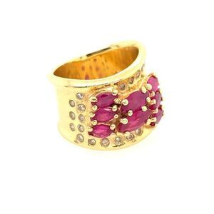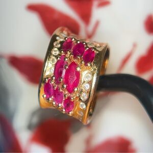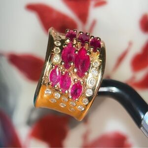 Real 14k Yellow Gold Rubies and Diamonds Ring , NOT GOLD PLATED OR GOLD FILLED.