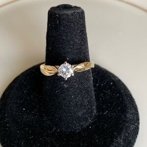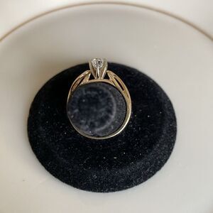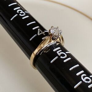 Written appraisal: Ladies 14k yellow gold diamond solitaire ring. Contains one round brilliant cut diamond measuring 4.3 mm in girdle diameter, estimated to weigh approximately .31 carat, G color, S12 clarity, set in six prongs. Complete ring weight is 2.22 grams. Appropriate Replacement Value $1,600.00. This written appraisal will be included. No discount, price firm.