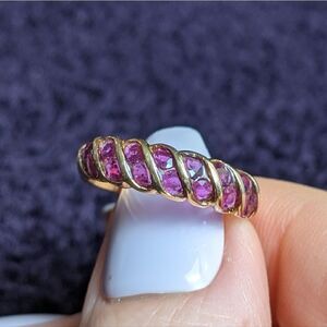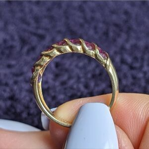 two row ruby in 14k solid yellow gold band with sweet scallop detail