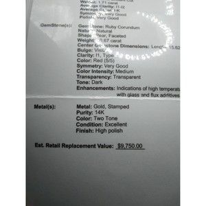 14kt Gold Ruby Dimond pendant with appraisal of 9,750