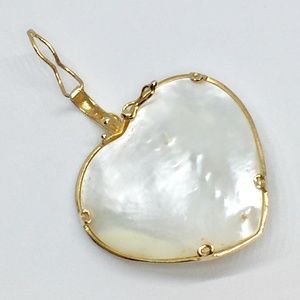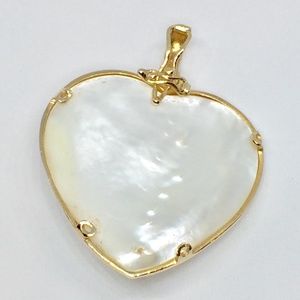 This is a stunning heart shaped mobe pearl, set in 14kt yellow gold, accented with five diamonds. (.05 dttw) The pendant measures approximately 1 3/4 inches tall, by 1 1/2 inches wide. Pre-owned in excellent like new condition.